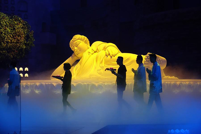 “佛顶宫将建筑、文化、科技、艺术、佛教完美融合,堪称世界佛教文化新遗产、当代建筑艺术新景观,更是一处教科书般的佛教文化艺术殿堂。”