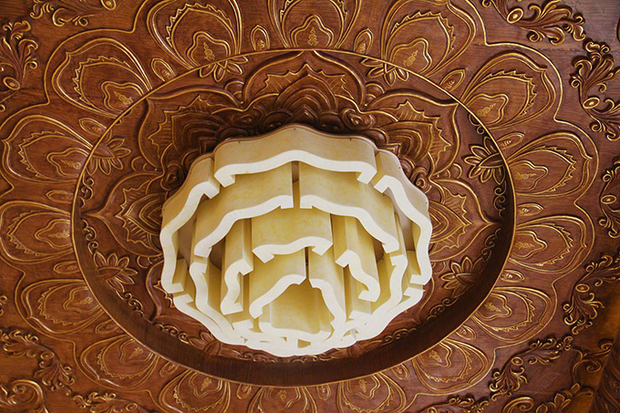 以木雕月梁和落地罩相隔环绕着千佛殿展开。