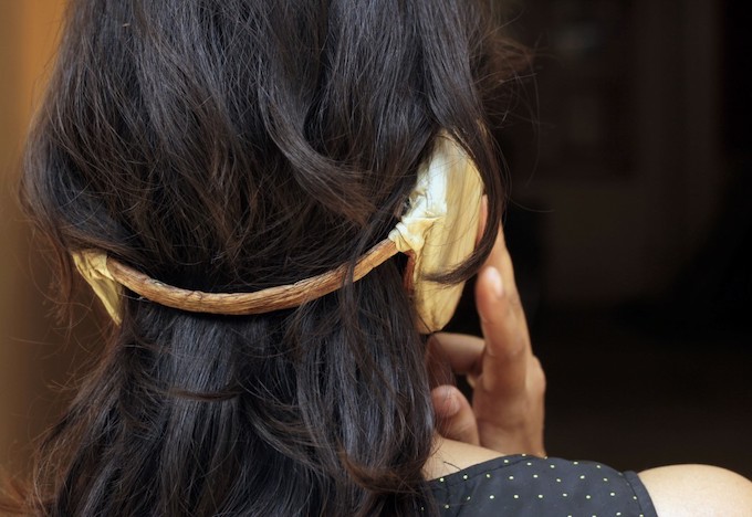 耳罩也是用香蕉叶制成的,但里面还有一层柔软的水葫芦。水葫芦是世界上繁殖最快的植物之一,它通常被认为是湖泊的天敌,但在设计师的手中却让它变成了舒适的面料。