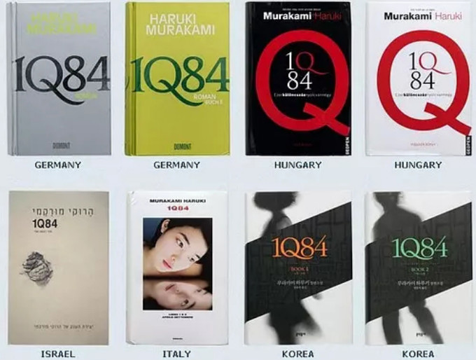 《 1Q84 》的封面设计同样是由设计师高桥千裕负责的,他设计杂志 Casa BRUTUS 采访时说道:“《 1Q84 》的设计更反映时代感。单行本《 1Q84 》以 Q 的字体颜色来区分册数,文库版则以不同颜色的数字进行区分”。