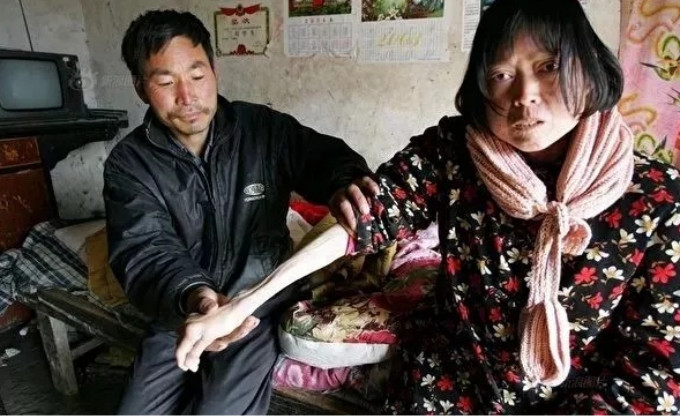 江西乐平名口的镇戴村,整村都被垃圾所污染,村民们因为感染而变得骨瘦如柴。