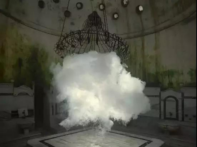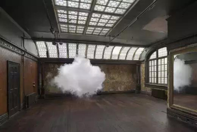 这朵漂浮在室内的云,和不同室内的设计风格巧妙的融合在一起,像魔术一样,超级真实,又仿佛超越了现实。这位荷兰艺术家伯恩德诺特·斯米尔德Berndnaut Smilde 发明了一种机器叫Nimbus,它能将房间里空气中的水蒸气凝聚起来,再辅助特殊灯光照明,就形成了栩栩如生的我们眼前这朵“房间内的云”,我们可以把它简称为”迷你雨云”。