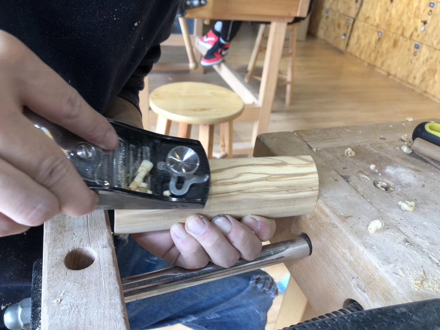 有时赶上切了块特别的木料,他的第一反应不是赶紧干活。而是套在老友脖子上,拍张“项链”纪念照。总之有他在,没人会觉得生活无聊。他年近30这么玩,还打算玩到老。