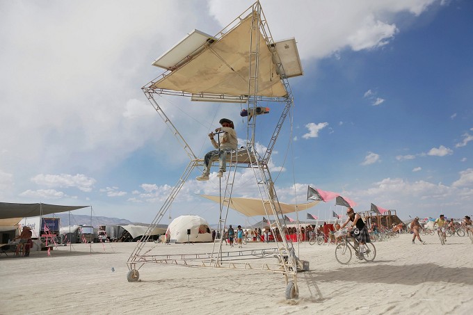 在火人节举办期间,黑石沙漠变身为一座临时城市,所有的布局与基础设施均由志愿者及狂欢者搭建,艺术家们会带着自己创作的各种艺术装置参加节日。
