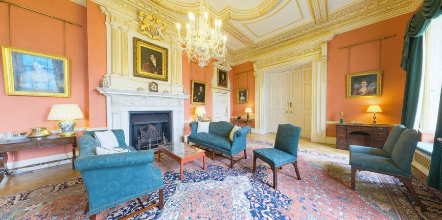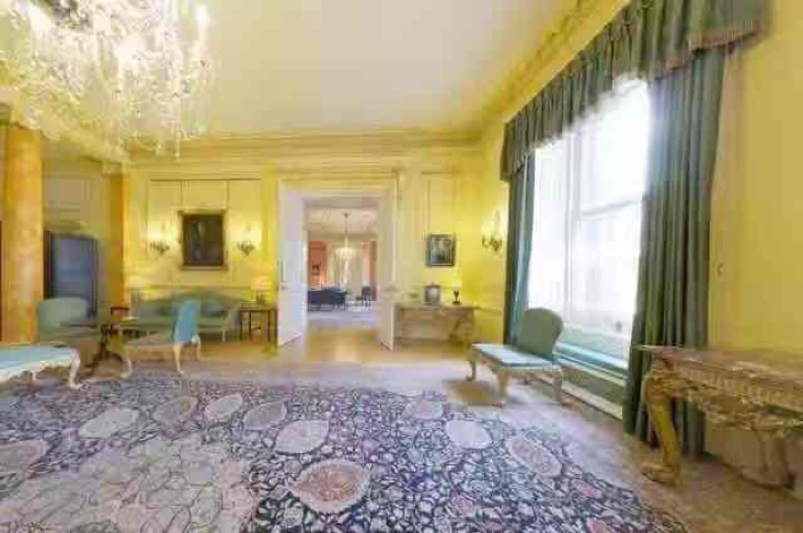 是的,这间色系明亮,左边高挂着罗伯特·沃伯尔画像,地上排列着黑白方格地板的房间,就是你推开小黑门后看到的第一眼神秘。别看它普普通通,但这可能是拥有最多国家政要痕迹的房间了。