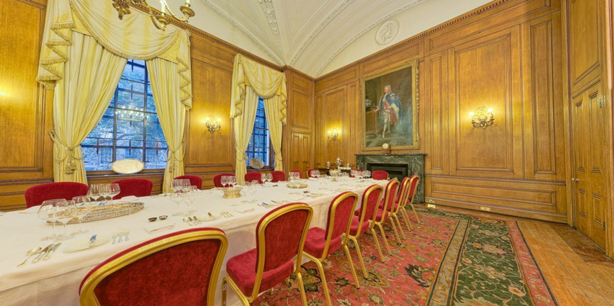 国宴厅于1783年在拱顶厨房上加盖所成,厅内置有多件名贵银器,气氛恢弘肃穆。