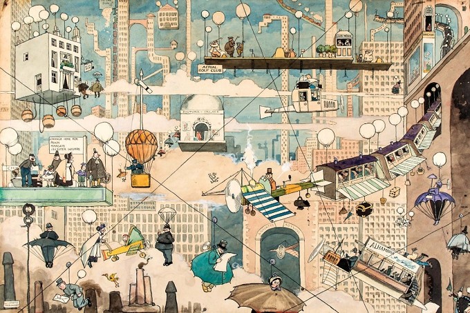 一战结束后英国房屋数量开始大规模扩张,城市中间兴建起数不清的公寓楼房。据统计,在1920年代至1930年代,英国就建造了约450万新公寓楼。这也为 Heath Robinson 提供了全新的创作素材。