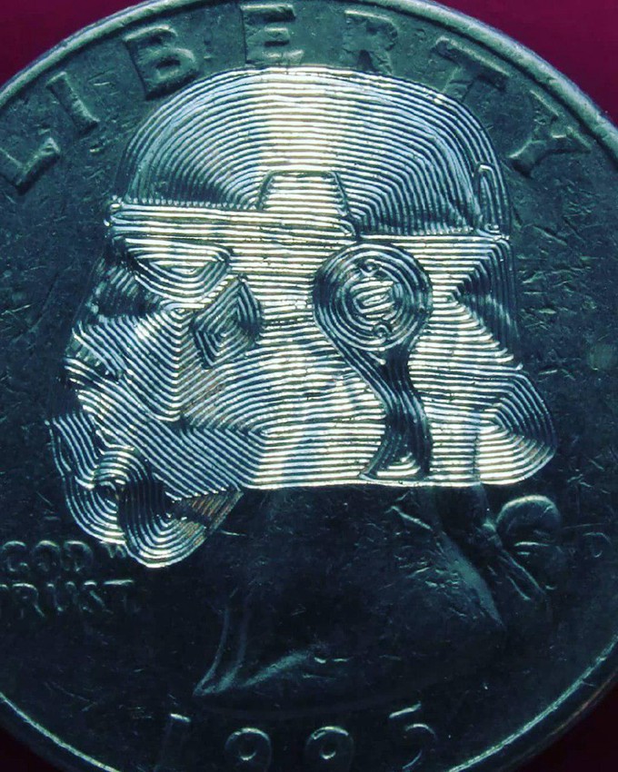 但随着Shaun 对技术和题材的不断扩展,他也开始尝试将硬币上的图案完全磨平后,进行更加大刀阔斧的再创作。
