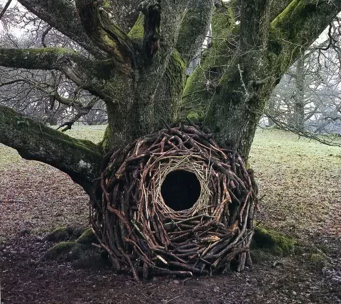 “ 我经常在大自然中随处停留。去选择筛我需要的素材,我就像个寻宝人,总觉得这里有什么东西等着我去发现。选好材料之后,我会开始着手组合创作这些自然素材。实际上,最终我的作品都会回归自然,成为它的一部分。之后经历阳光,雨水,风雪...有的或许能继续生长、变化,有的干脆消失殆尽...‘短暂的存在’是我大多数作品的共性,作品会在自然中“变化”,变化的过程,变化后的结果,那才是作品最终的样子。”