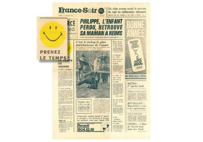 1963年,一位来自美国马萨诸塞州名叫Harvey Ball的自由画家,受委托为一家经历了数次重组收购折腾的保险公司员工鼓舞士气,在纽扣、徽章、海报等等上面设计了黄色笑脸的图案,这样的小活,对于Harvey Ball来说10分钟就搞定了,当然这次Harvey Ball也仅仅只是赚了45美金。