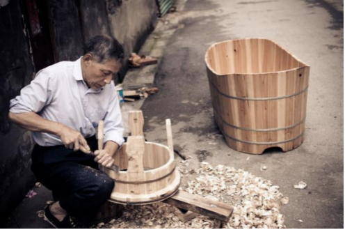箍桶匠又称圆作木匠,民间专门制作与修理日用木桶或木盆的工匠。