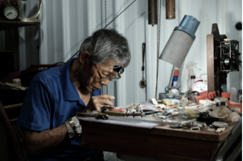 由任达华饰演的钟表师傅为了将回归仪式执行总指挥的手表调至分秒不差,不眠不休,分文不收。