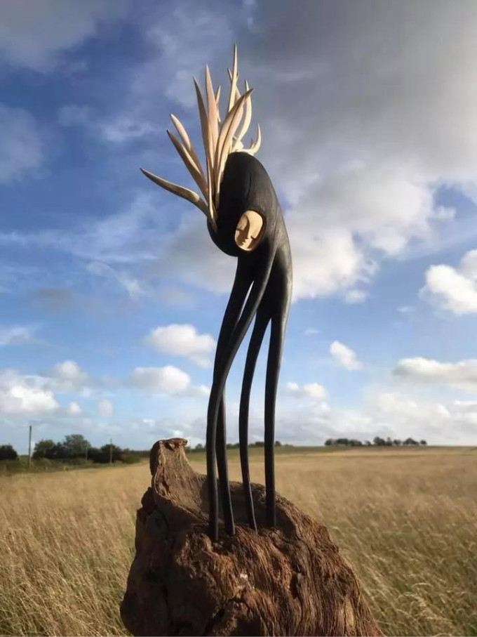 木材在欧洲带有民间传说和神话的痕迹,所以他雕塑的灵感就来自于木材本身。