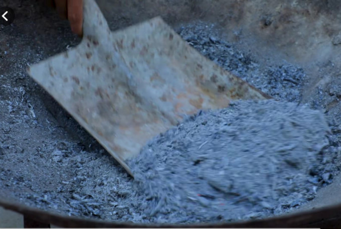 把烧制好的豆秸草木灰加入搅拌均匀。