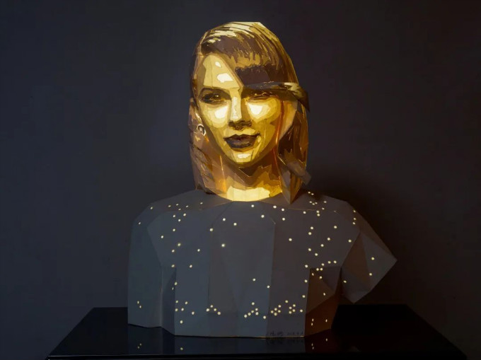这是李洪波用宣纸折的周杰伦,他巧妙的利用灯光和纸张厚度的不同,制造出了立体的光影效果。