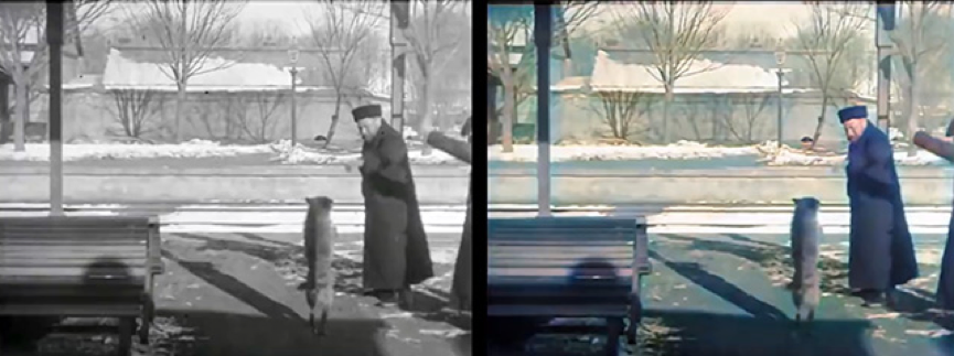这段珍贵的视频由南卡罗莱纳大学图书馆收藏,大谷将视频的修复工作分成了两个阶段,第一个阶段主要针对画面进行补帧、扩分辨率、上色三个环节修复:
