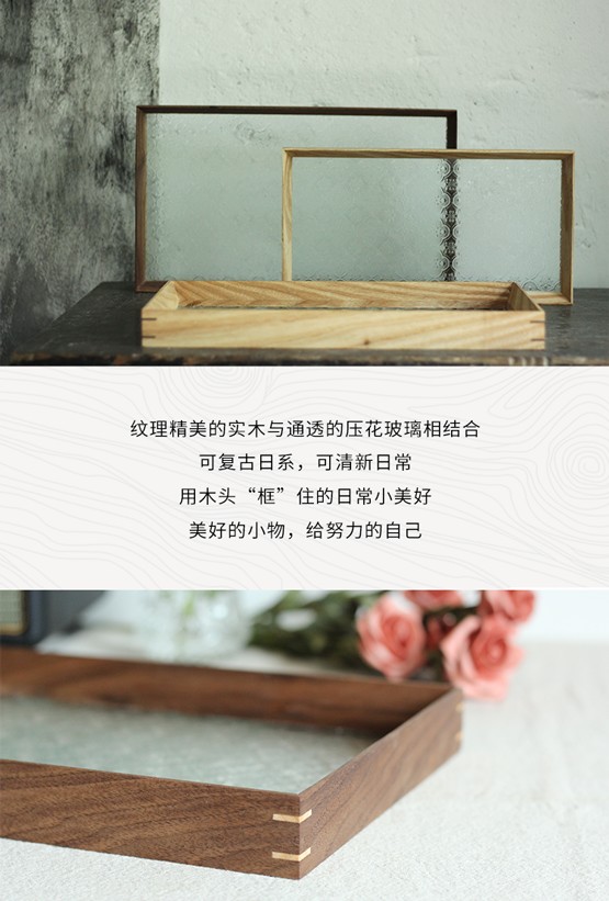 纹理精美的实木与通透的压花玻璃相结合,可复古日系,可清新日常,用木头「框」住的日常小美好,美好的小物,给努力的自己。