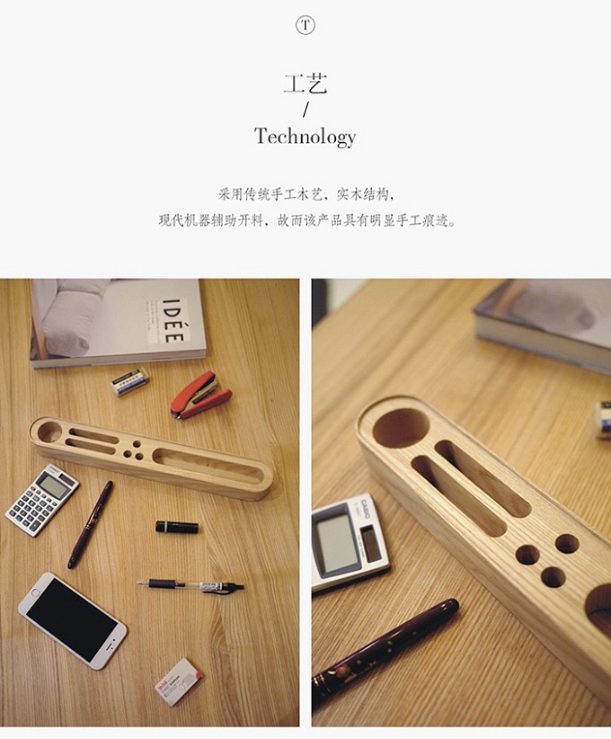 它可以用来收纳钥匙、茶杯,也可以用来当手机架或者纯摆件。底座采用整木挖槽工艺,边缘处做工平滑细腻。
