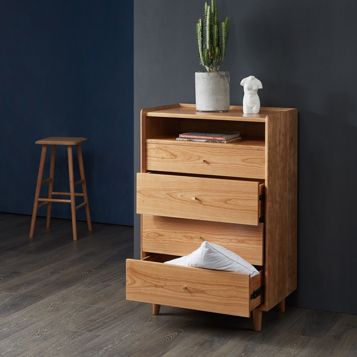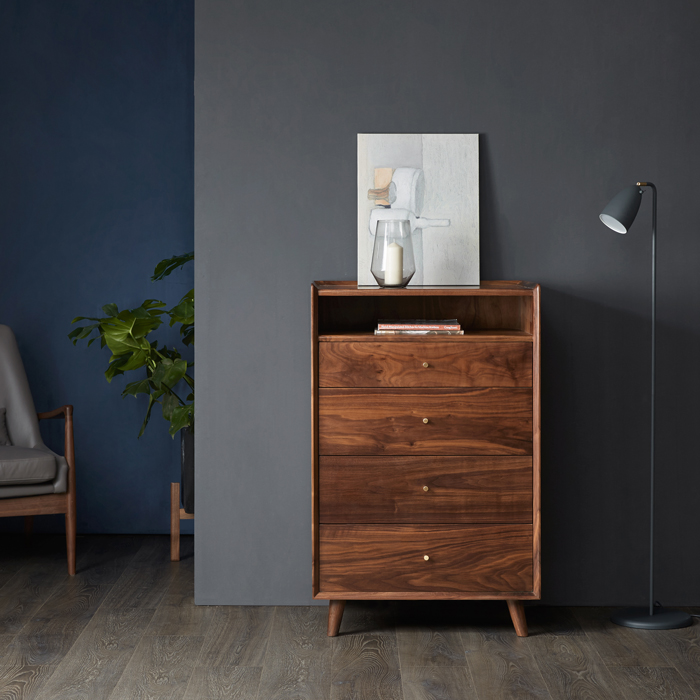 这是一个在每个空间都能发挥作用的柜子,无论是客厅、餐厅还是卧室。五层空间、四个抽屉、三种规格,两款木材选择,一个柜子就能满足你所有的收纳要求。