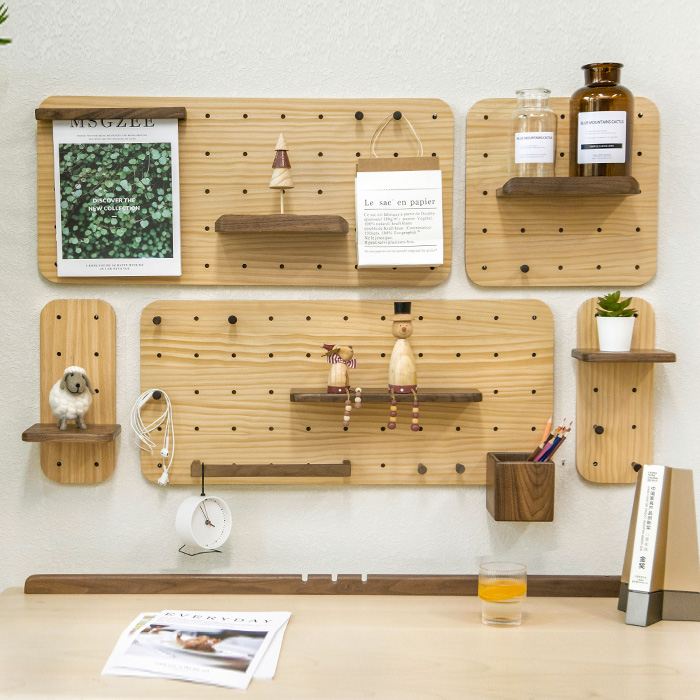 这款洞洞板以进口实木打造,用料厚实,安全稳固,能够满足日常物品承重。