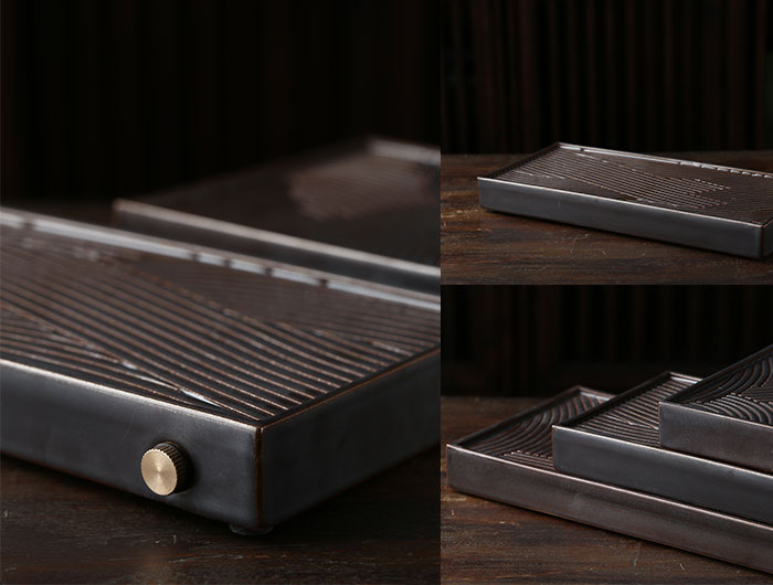 放大出水口的设计,便于内部清理,配以干泡塞与湿泡塞两种模式,最大程度的发挥了茶盘的实用性。让人们更好地享受饮茶的乐趣。