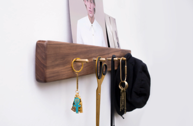 这款一字挂钩使用北美黑胡桃「FAS」级和榉木「A级」为材料,让装饰画、钥匙、摆件、雨伞、包包、发绳等都能找到自己的归宿。