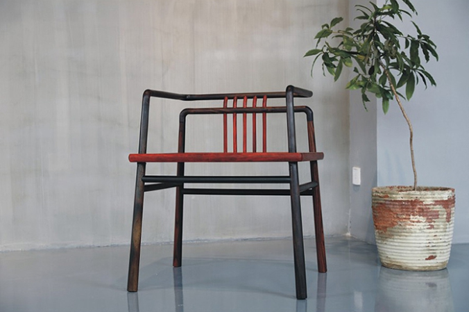 这件简约置物边几凳共有两款,分别为喜相逢圆凳和折枝花圆凳,可随处方便置物,亦可折叠如书,巧省空间。