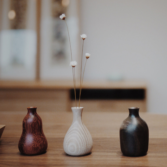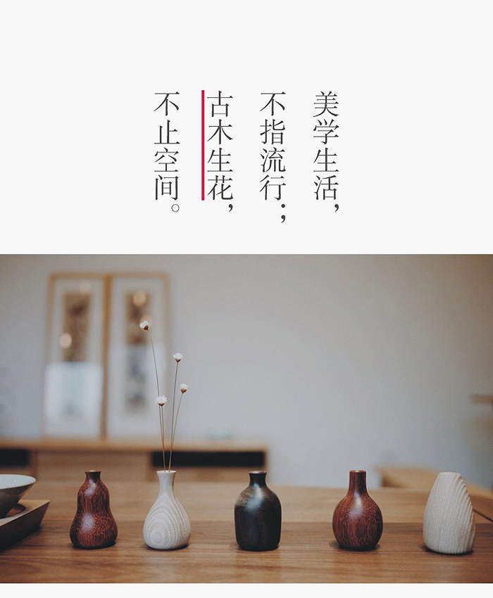花梨小瓶,三五为伴,娇小精致,形态各异。或小花一朵,或小草一根,呢喃呓语,置于家中,娴静优雅。