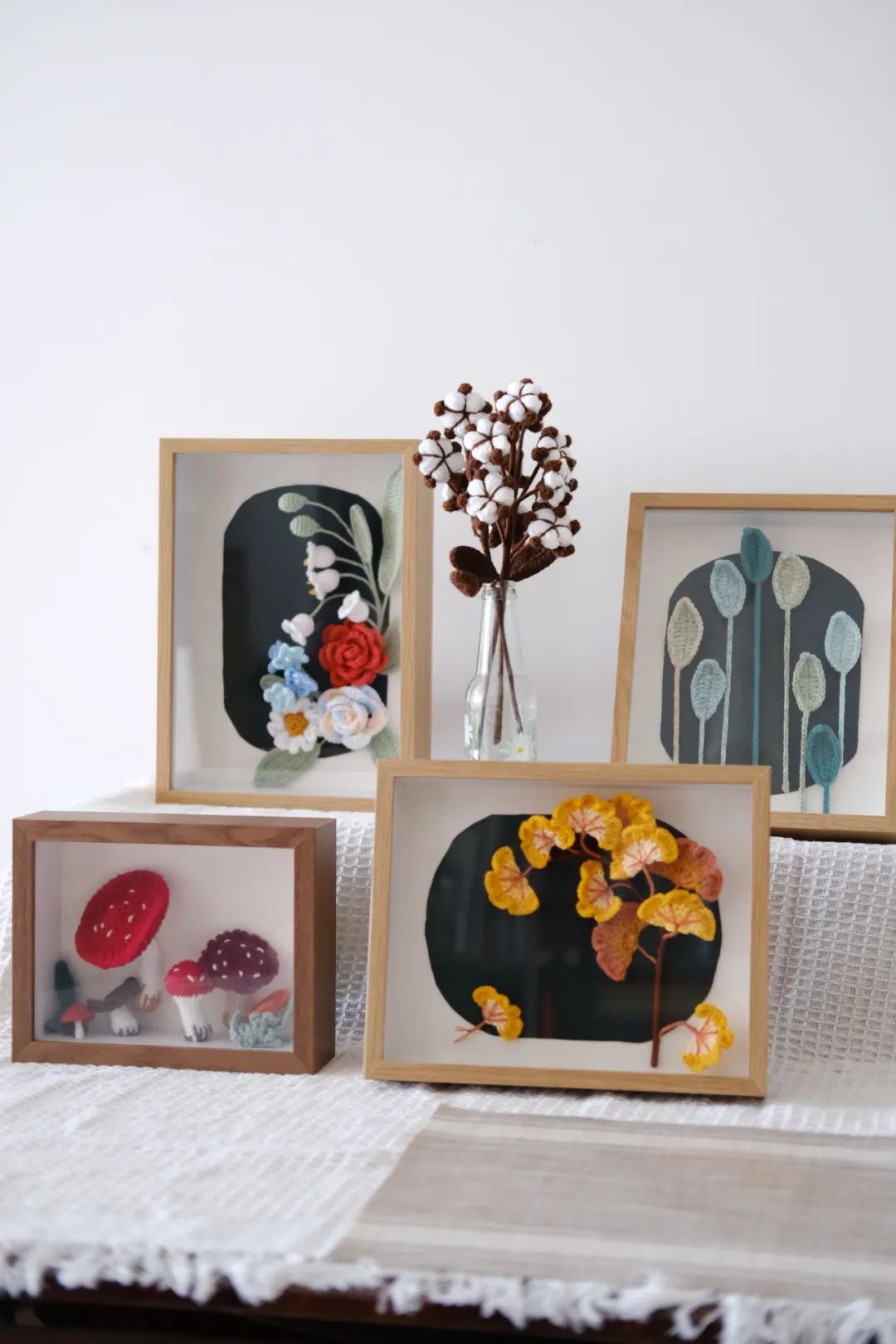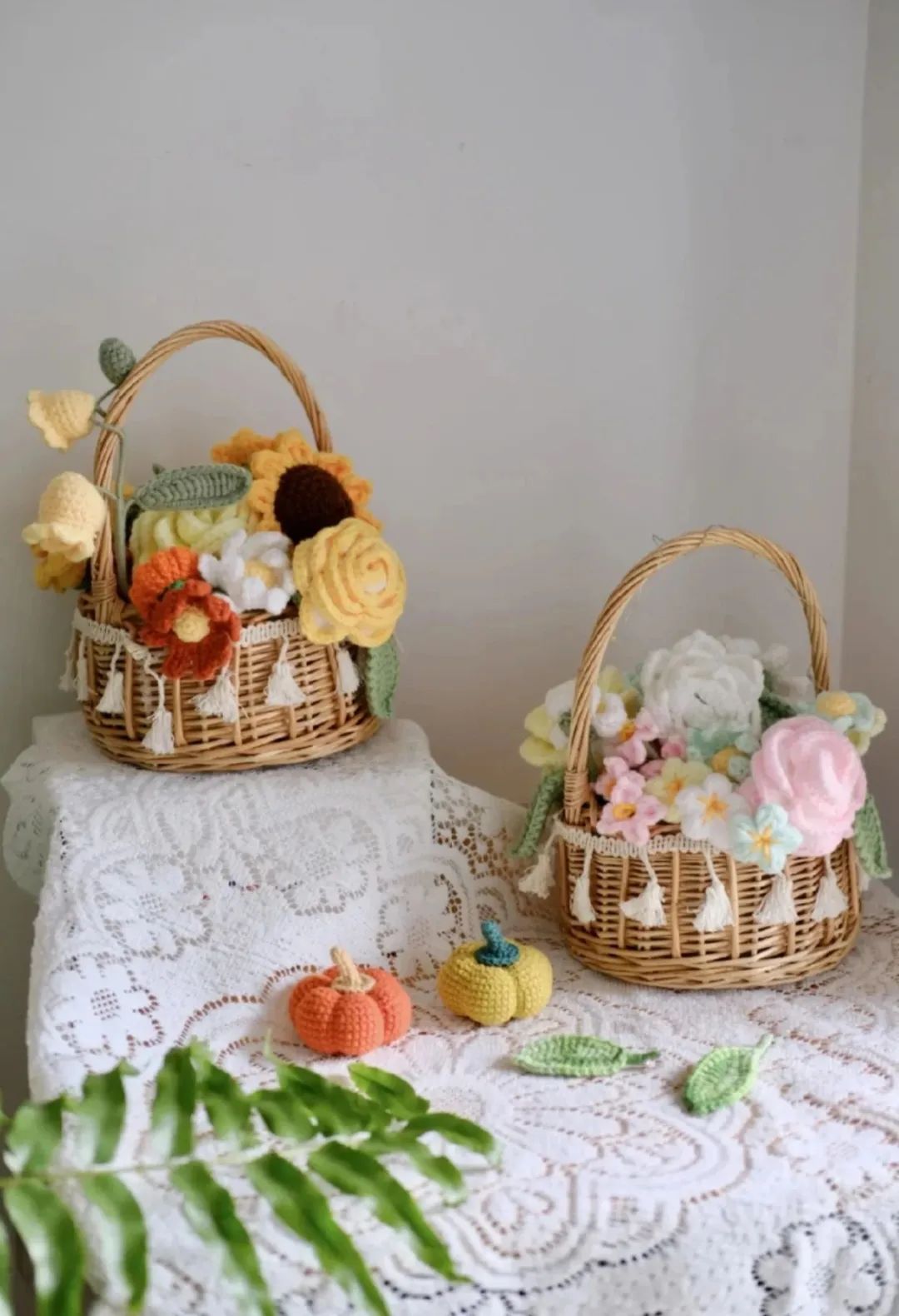 早期的圈圈妈对照着日本的编织书籍学习,其中《中里华奈的迷人花草果实钩编》更是她的心头好。她按照书中的指导,一针一线地钩织出了各种作品,让家里变成了一个充满奇幻色彩的花园。这些作品还吸引了众多小姐妹前来欣赏、拍照打卡。