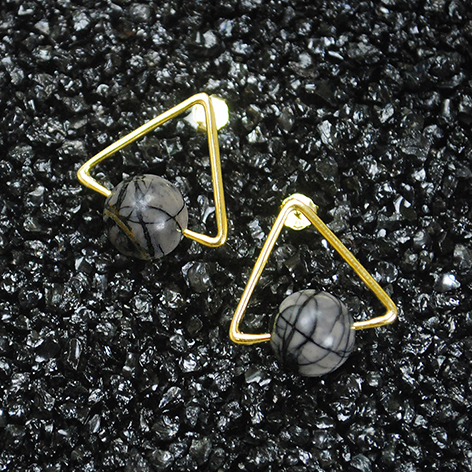 ESCA STUDIO S925纯银镀金天然美国毕加索石三角几何宝石耳钉
