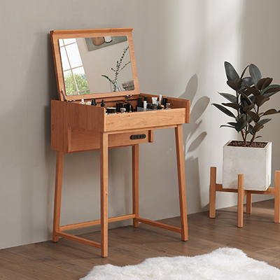 物应「空息梳妆台」实木简约化妆桌台小户型大容量翻盖多功能书桌