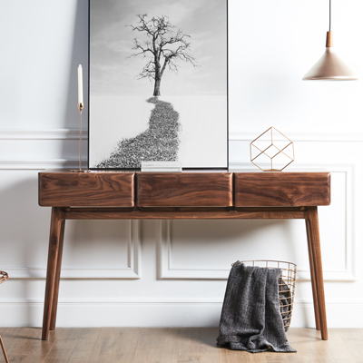 物应「寂月玄关柜」简约黑胡桃实木三抽门厅柜双开门餐边收纳鞋柜