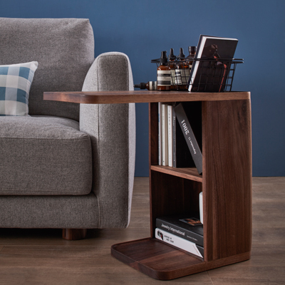 物应「凝月C形边几」现代简约小户型实木沙发边几角几可移动茶几