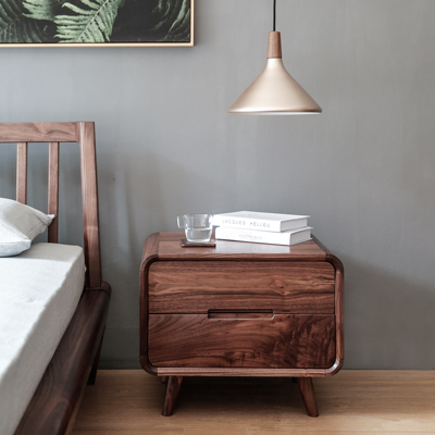 物应「凝月床头柜」实木简约现代黑胡桃原木经济型收纳储物柜柜子
