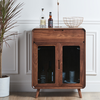 物应「空息餐边柜」黑胡桃实木北欧玻璃移门茶水柜现代简约储物柜