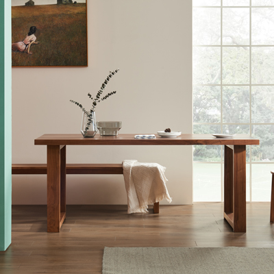 物应「朴石餐桌」黑胡桃木樱桃木餐桌简约小户型全实木书桌茶桌