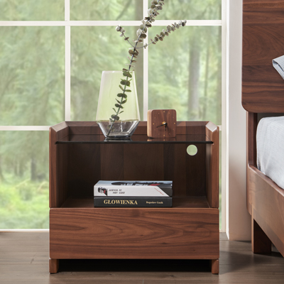 物应「空息床头柜」樱桃木床边北欧玻璃储物边柜小户型实木床头柜