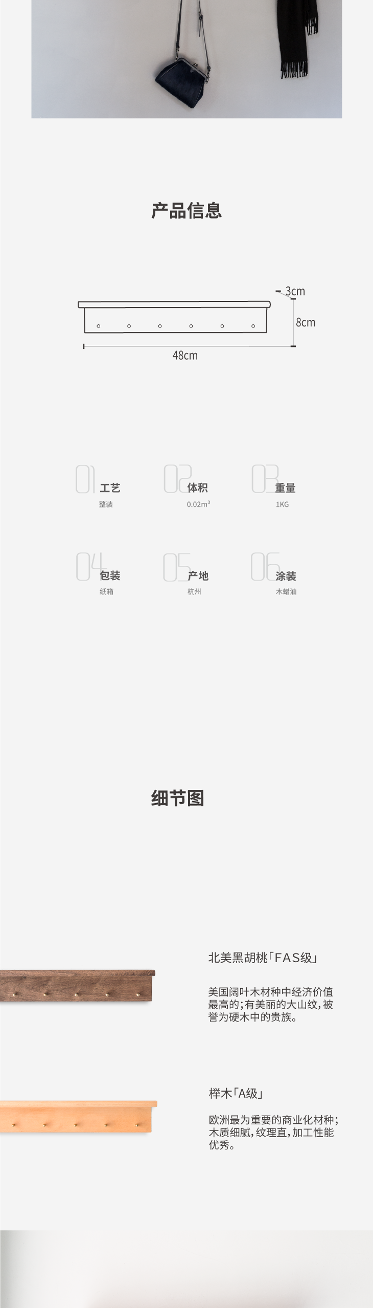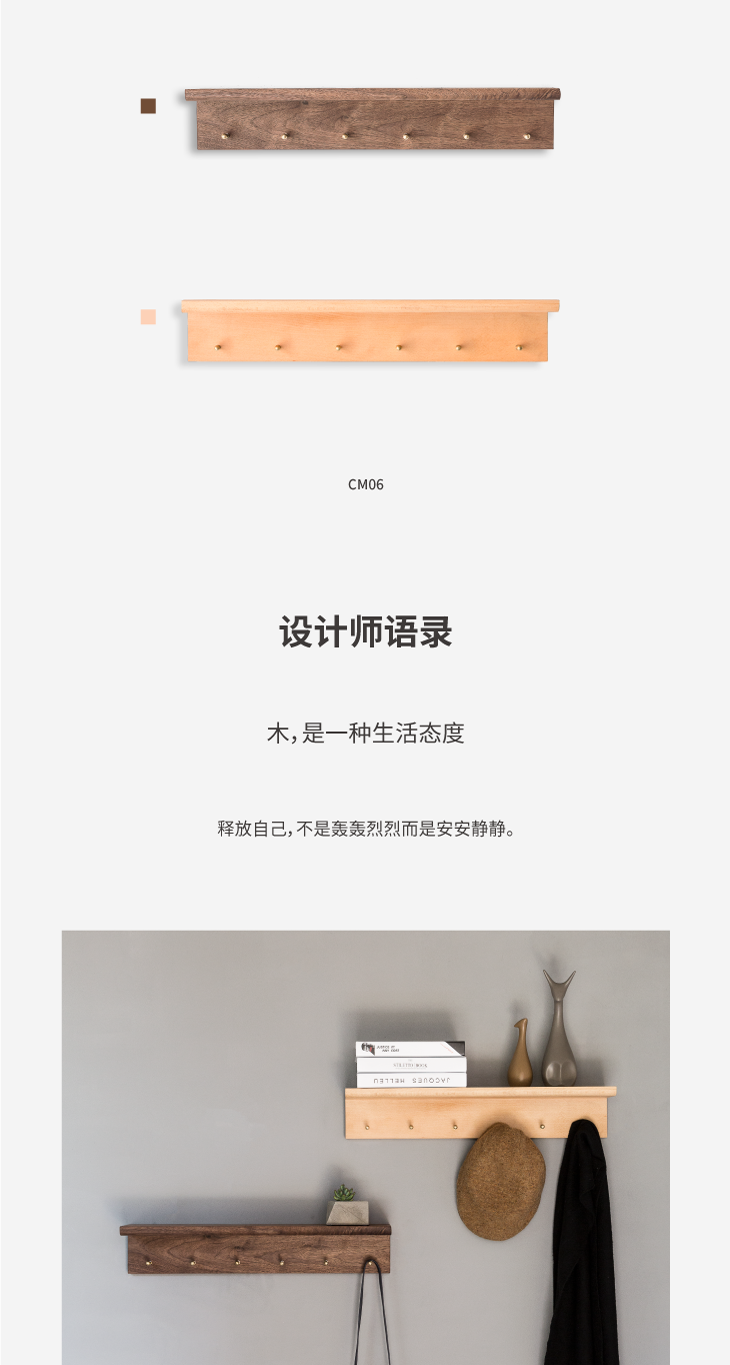 L型黑胡桃木黄铜挂钩 L型榉木黄铜挂钩