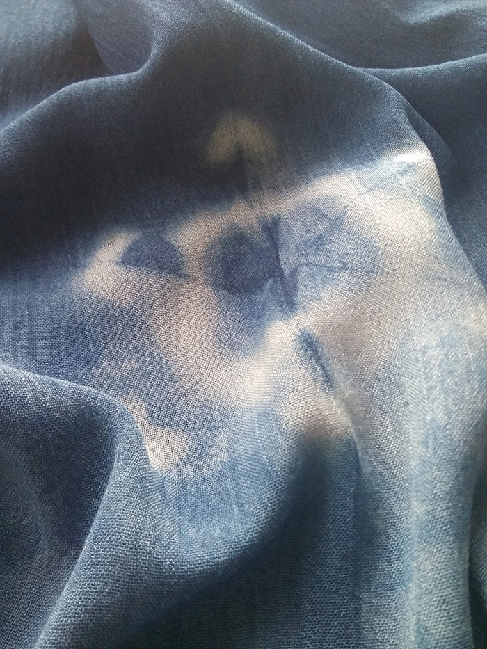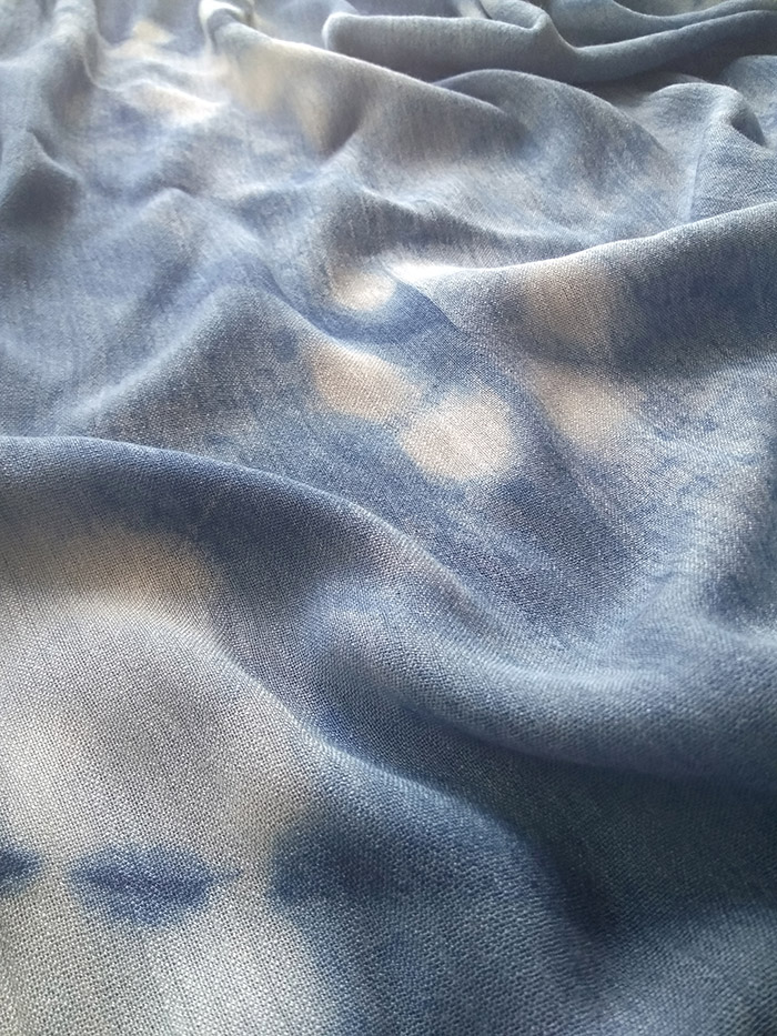 “晶”系列植物靛蓝轻蓝染 ※雪花※ 无序肌理纯棉围巾披肩