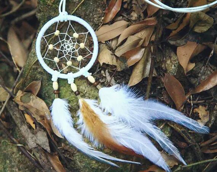 捕梦网源自18世纪,印第安人信奉它有巨大的灵力,可以捕获美丽的梦境。最初的捕梦网是用藤蔓或小枝条编织而成,非常原生态。把它挂在床头,好梦便会穿过中间的小孔进入梦境,而恶梦则会顺着羽毛流下,随清晨的阳光而消逝。